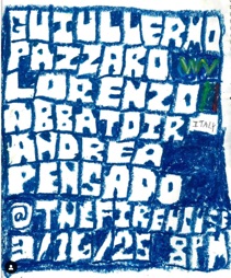 - FIREHOUSE - March 16, 2025 - Worcester, MA - Playing solo. Also in the bill: Lorenzo Abattoire and Guillermo Pizarro.