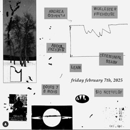 - FIREHOUSE - February 7, 2025 - Worcester, MA - Playing solo. Also in the bill: Abdul Sherzai, Lean and Ceremonial Abyss